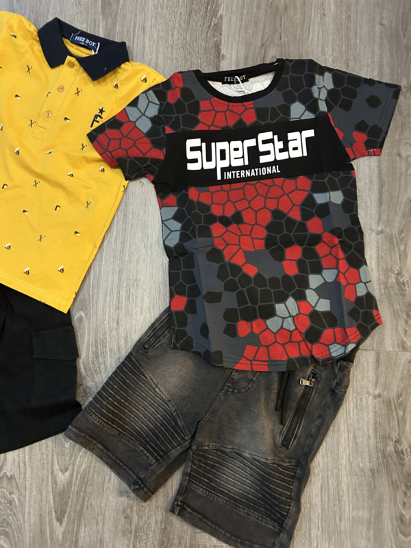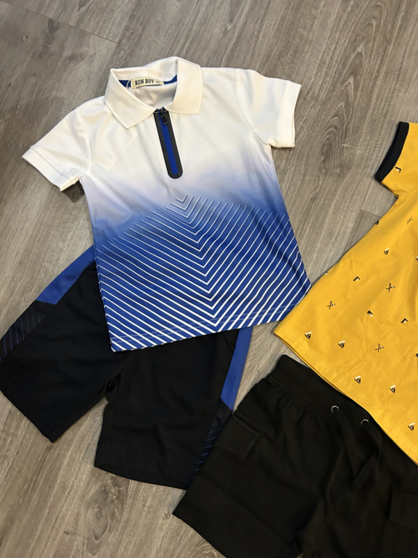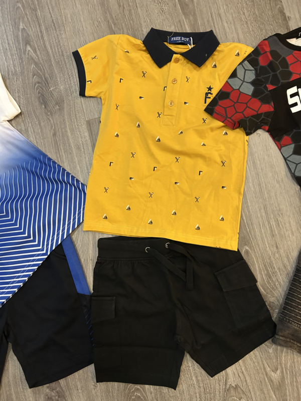 Pakket bestaande uit een setje, twee bermuda's een polo en een T-shirt. Alle artikelen zijn maat 6 en vallen als een ruime maat 116.