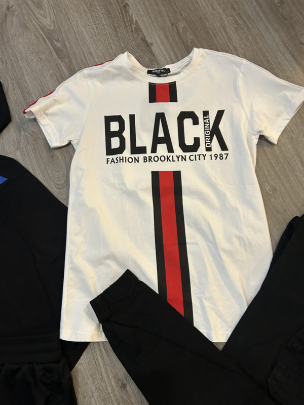 Dit pakket bestaat uit twee t-shirts een joggbermuda en een cargopant! Maat 176 valt ongeveer als een herenmaat S.
