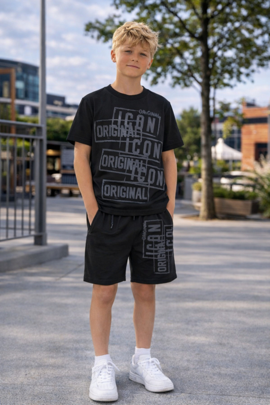 Deze stoere zomerset bestaat uit een shirt met korte mouwen en een bijpassende bermuda. Het shirt en de bermuda hebben een stoere ICON print. De bermuda heeft een elastische tailleband met aantrekkoord voor een optimale pasvorm.