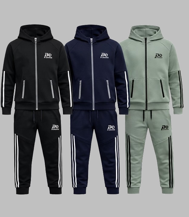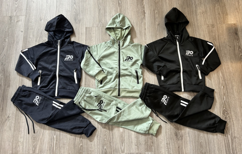 Waanzinnig stoer twee-delig trainingspak van soepele stof. Deze set bestaat uit een sweatjack met hoody en een bijpassende joggpant.
