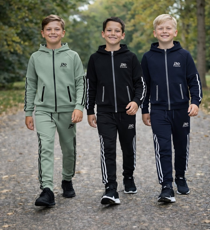 Trainingspak - Bo zwartWaanzinnig stoer twee-delig trainingspak van soepele stof. Deze set bestaat uit een sweatjack met hoody en een bijpassende joggpant.Verkrijgbaar in de maten 98 t/m 164.