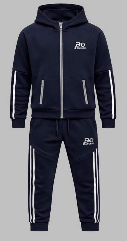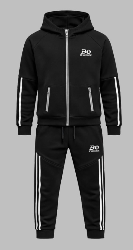 Waanzinnig stoer twee-delig trainingspak van soepele stof. Deze set bestaat uit een sweatjack met hoody en een bijpassende joggpant.Verkrijgbaar in de maten 98 t/m 164.